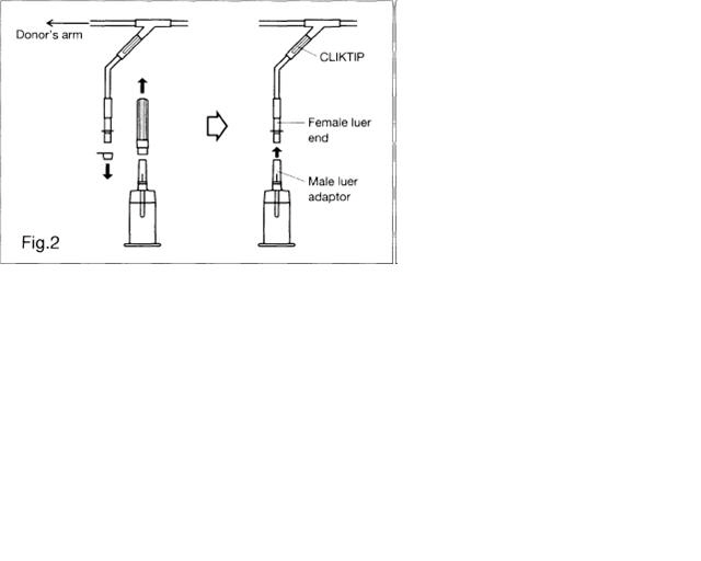 b) Remove covers and connect multi-sample luer adapter to female luer at end of donor sampling tubing (Fig. 2).