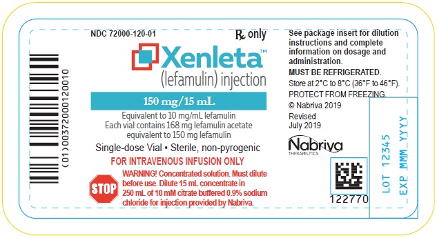 XENLETA Injection is a clear, colorless, sterile, nonpyrogenic solution for intravenous administration containing 150 mg of lefamulin in 15 mL 0.9% sodium chloride in a single-dose vial intended for dilution in 250 mL of 10 mM citrate buffered (pH 5) 0.9% sodium chloride. The drug product is provided in a clear type I glass 15 mL vial with a gray rubber stopper, aluminum seal and flip off cap. The diluent is provided in infusion bags containing 250 mL of sterile, nonpyrogenic 10 mM citrate buffered (pH 5) 0.9% sodium chloride solution. The vial stopper and infusion bag are not made with natural rubber latex.