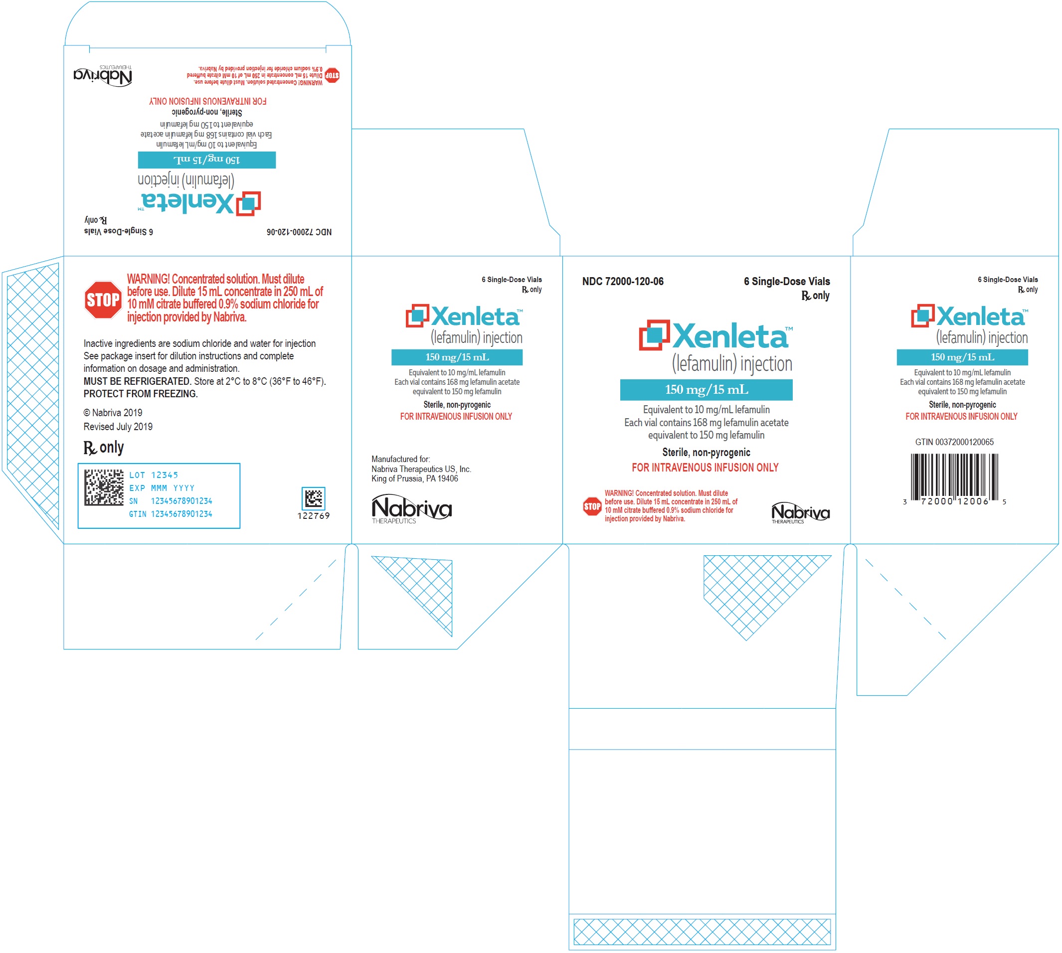 150 mg single dose lefamulin vials (NDC 72000-120-06); packed in cartons of 6.