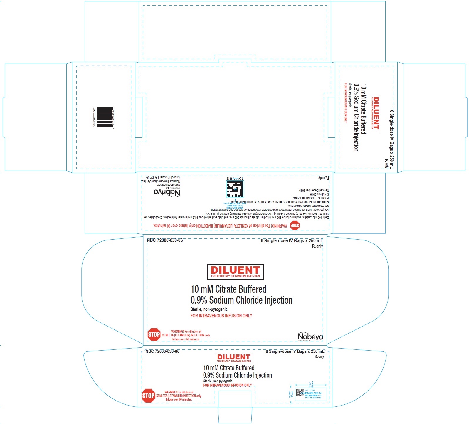250 mL citrate buffer diluent bags (NDC 72000-030-06); packed in cartons of 6.