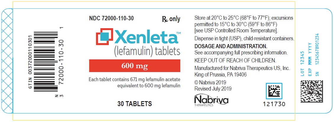 XENLETA Tablets for oral administration are available as blue, oval, film-coated tablets containing 671 mg lefamulin acetate equivalent to 600 mg lefamulin. The inactive ingredients are colloidal silicon dioxide, croscarmellose sodium, FD&C Blue No 2 aluminum lake, ferrosoferric oxide, magnesium stearate, mannitol, microcrystalline cellulose, polyethylene glycol, polyvinyl alcohol (partially hydrolyzed), povidone K30, shellac glaze, talc, and titanium dioxide.
