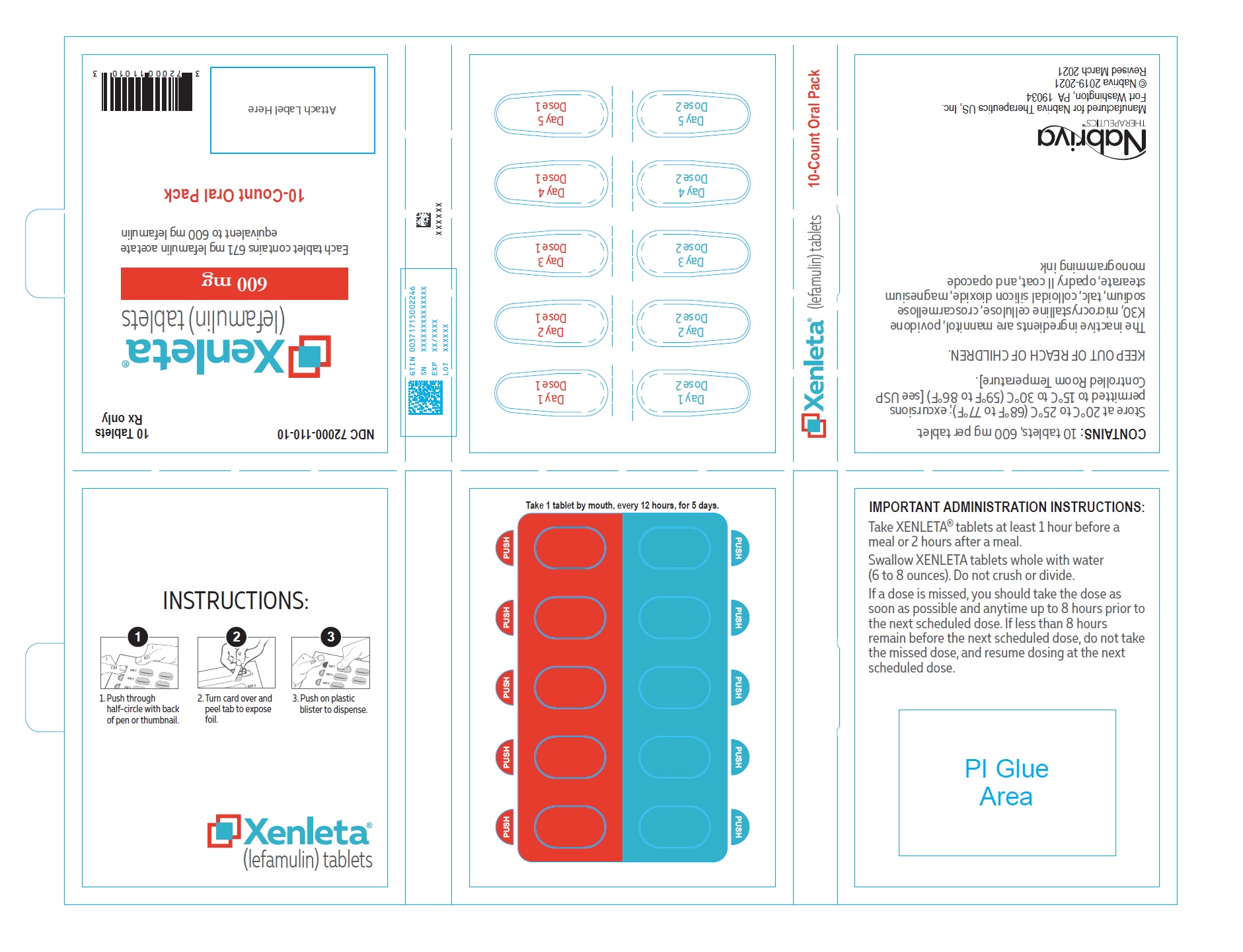 XENLETA is supplied in the following strengths and package configurations: