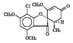 The chemical name of griseofulvin, USP is 7-Chloro-2’, 4,6-trimethoxy-6’ β-methylspiro[benzofuran-2(3H),1’-[2]cyclohexene]-3,4’-dione. Its structural formula is: