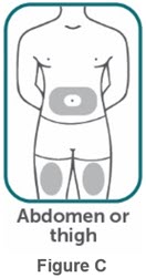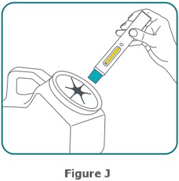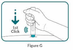 Step 10:Place the BIMZELX autoinjector flat against your skin, then firmly press the BIMZELX autoinjector down against your skin. You will hear a "click" sound. Your injection begins when the 1 st"click" is heard (see Figure G) .