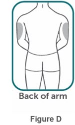 Step 9:Hold the BIMZELX autoinjector at a 90-degree angle to the cleaned injection site (see Figure F).