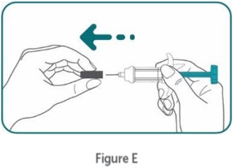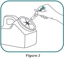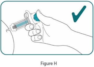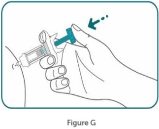 Step 10:Firmly push the plunger head all the way down until all the medicine is injected. (see Figure G) .