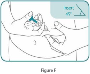 Step 9:Gently pinch and hold a fold of skin where you cleaned the injection site with one hand. With the other hand, insert the needle into your skin at about a 45-degree angle.