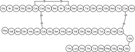 Human insulin is a rapid acting human insulin produced by recombinant DNA technology utilizing a non-pathogenic laboratory strain of Escherichia coli(K12). Chemically, human insulin has the empirical formula C 257H 383N 65O 77S 6and a molecular weight of 5808. Human insulin has the following primary amino acid sequence: