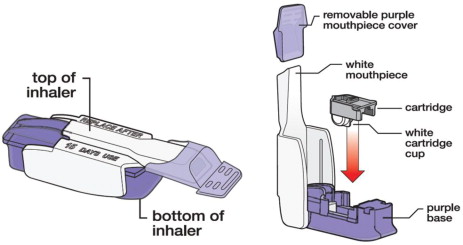 Principal Display Panel 180 cartridges; 60 – 4 unit cartridges, 60 – 8 unit cartridges and 60 – 12 unit cartridges and 2 inhalers (Titration Pack)
