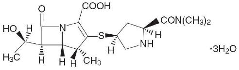 Single dose clear glass vials of meropenem for injection containing 500 mg or 1 gram (as the trihydrate blended with anhydrous sodium carbonate for re-constitution) of sterile meropenem powder.
