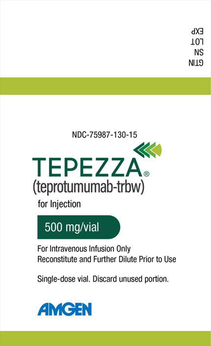 TEPEZZA (teprotumumab-trbw) for injection is a sterile, preservative-free, white to off-white lyophilized powder available as follows: