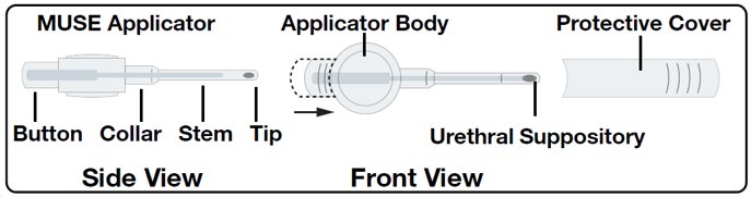 MUSE is a single-dose applicator for the delivery of the urethral suppository into the male urethra for the treatment of erectile dysfunction.