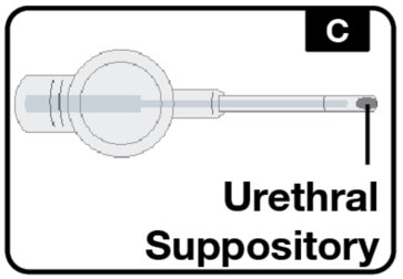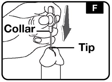 Step 6. Insert MUSE applicator into urethra opening up to the collar (Figure F).