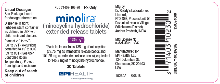 MINOLIRA (minocycline hydrochloride) extended-release tablets for oral administration contain 105 mg or 135 mg of minocycline, equivalent to 113.4 mg or 145.8 mg of minocycline hydrochloride, respectively. MINOLIRA extended-release tablets, 105 mg and 135 mg, contain 25% of minocycline as immediate release beads and 75% of minocycline as extended release beads.
