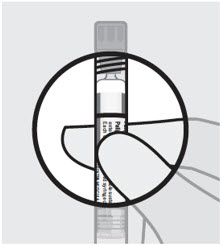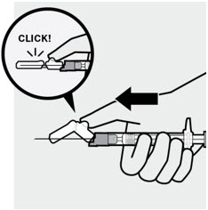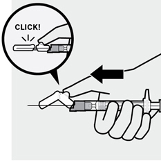 After the injection is complete, use your thumb or a flat surface to secure the needle in the safety device. The needle is secure when a "click" sound is heard.