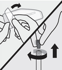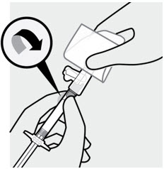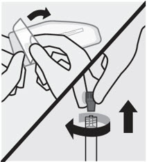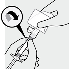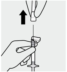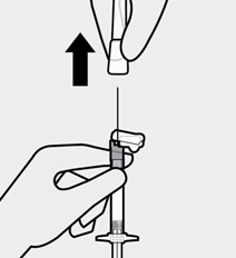 Then, holding the syringe upright, twist and pull the rubber cap to remove.