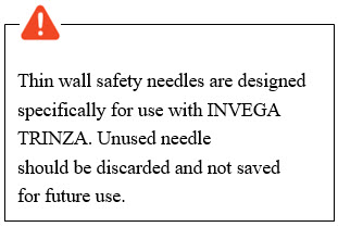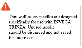 Thin wall safety needles are designed to be used with INVEGA TRINZA. Therefore, it is important to only use the needles provided in the INVEGA TRINZA kit.