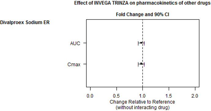 In the Thorough QT study (n=141), the 8 mg dose of immediate-release oral paliperidone (n=50) showed a mean placebo-subtracted increase from baseline in QTcLD (QT interval corrected for heart rate using the population specified linear derived method) of 12.3 msec (90% CI: 8.9; 15.6) on day 8 at 1.5 hours post-dose. The mean steady-state peak plasma concentration for this 8 mg dose of paliperidone immediate release (C max ss=113 ng/mL) was approximately 2-fold the exposure with the maximum recommended 819 mg dose of INVEGA TRINZA administered in the deltoid muscle (predicted median C max ss=56 ng/mL). In this same study, a 4 mg dose of the immediate-release oral formulation of paliperidone, for which C max ss=35 ng/mL, showed an increased placebo-subtracted QTcLD of 6.8 msec (90% CI: 3.6; 10.1) on day 2 at 1.5 hours post-dose.