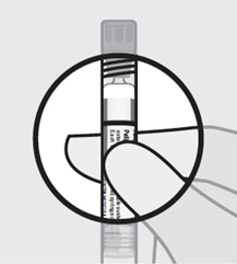 After shaking the syringe for at least 15 seconds, check the liquid in the viewing window.