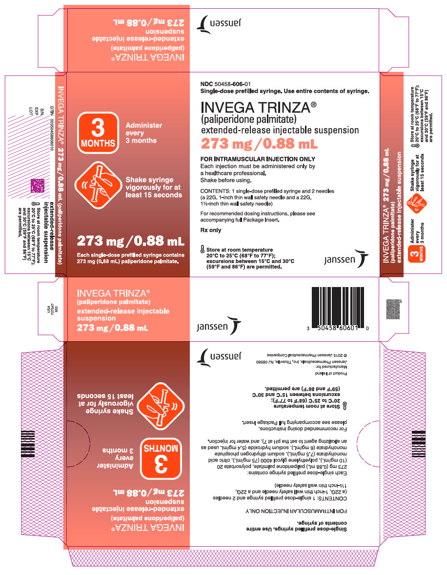 INVEGA TRINZA is available as a white to off-white aqueous extended-release injectable suspension for intramuscular injection in dose strengths of 273 mg/0.88 mL, 410 mg/1.32 mL, 546 mg/1.75 mL, and 819 mg/2.63 mL paliperidone palmitate in single-dose prefilled syringes.