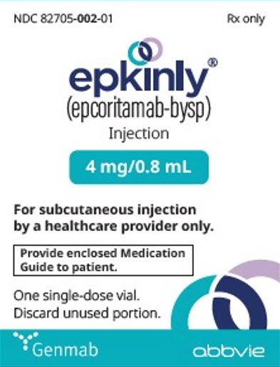 EPKINLY (epcoritamab-bysp) injection is a sterile, preservative-free, clear to slightly opalescent, colorless to slightly yellow solution, free of visible particles, supplied in glass vials as follows: