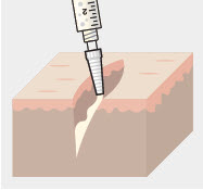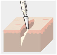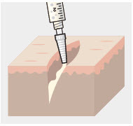 A single-dose application of a viscous solution administered directly via a needle-free syringe to coat the affected tissue within the surgical site prior to suturing. Two syringes are provided to aid in application.