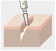 A single-dose application of a viscous solution administered directly via a needle-free syringe to coat the affected tissue within the surgical site prior to suturing. One syringe is provided to aid in application.