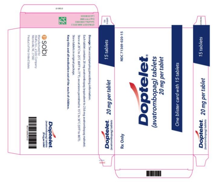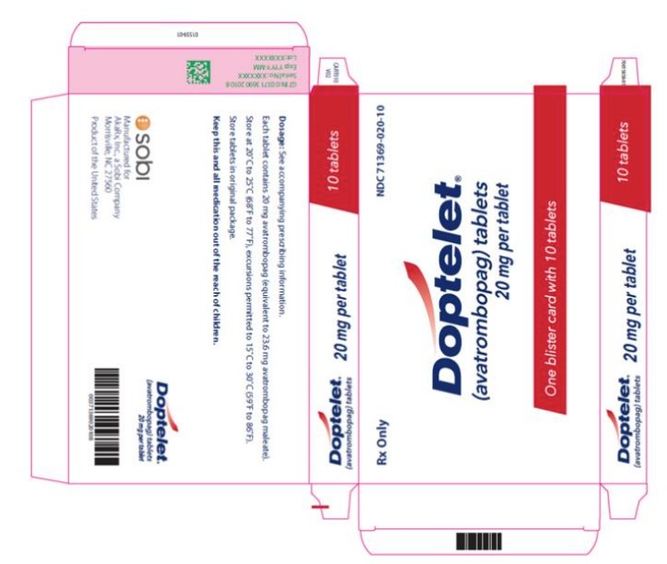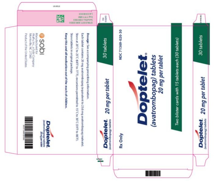 DOPTELET Tablets: 20 mg as round, biconvex, yellow, film-coated tablets debossed with “AVA” on one side and “20” on the other side.