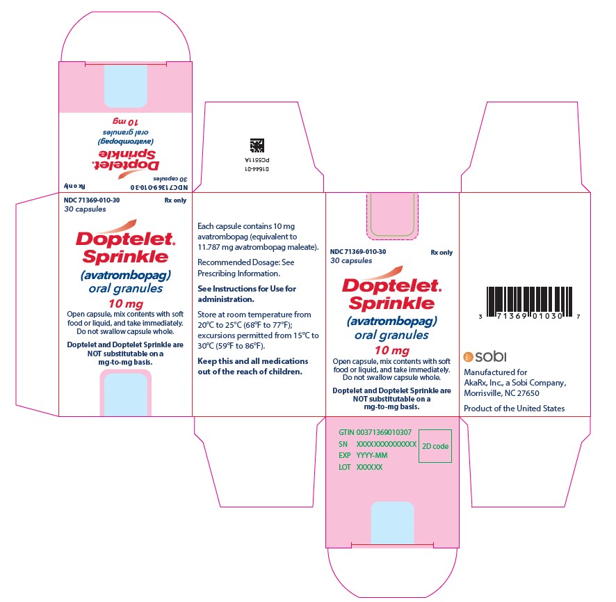 DOPTELET SPRINKLE: 10 mg as Size 0 capsules containing white to off-white granules. The capsules have a white opaque body and light blue opaque cap with a black arrow symbol imprinted on the body and cap.