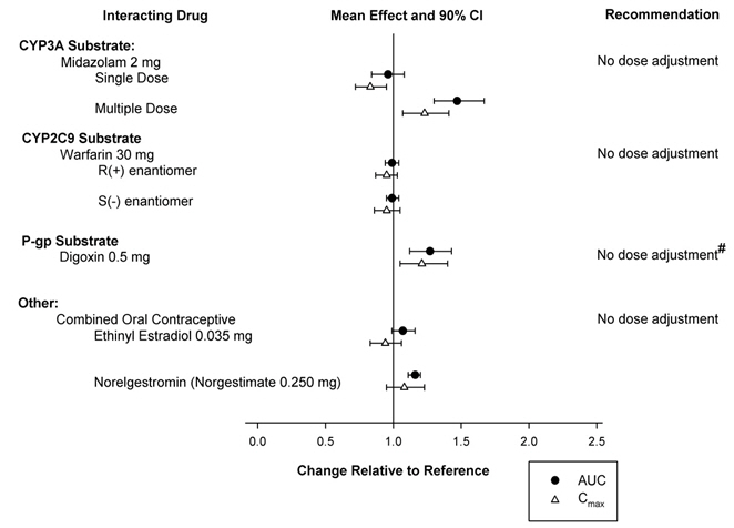 In vitro metabolism studies demonstrate that suvorexant has the potential to inhibit CYP3A and intestinal P-gp; however, suvorexant is unlikely to cause clinically significant inhibition of human CYP1A2, CYP2B6, CYP2C8, CYP2C9, CYP2C19 or CYP2D6. In addition, no clinically meaningful inhibition of OATP1B1, BCRP and OCT2 transporters is anticipated. Chronic administration of suvorexant is unlikely to induce the metabolism of drugs metabolized by major CYP isoforms. Specific in vivo effects on the pharmacokinetics of midazolam, warfarin, digoxin and oral contraceptives are presented in Figure 2 as a change relative to the interacting drug administered alone (test/reference) [see Drug Interactions (7.3)].
