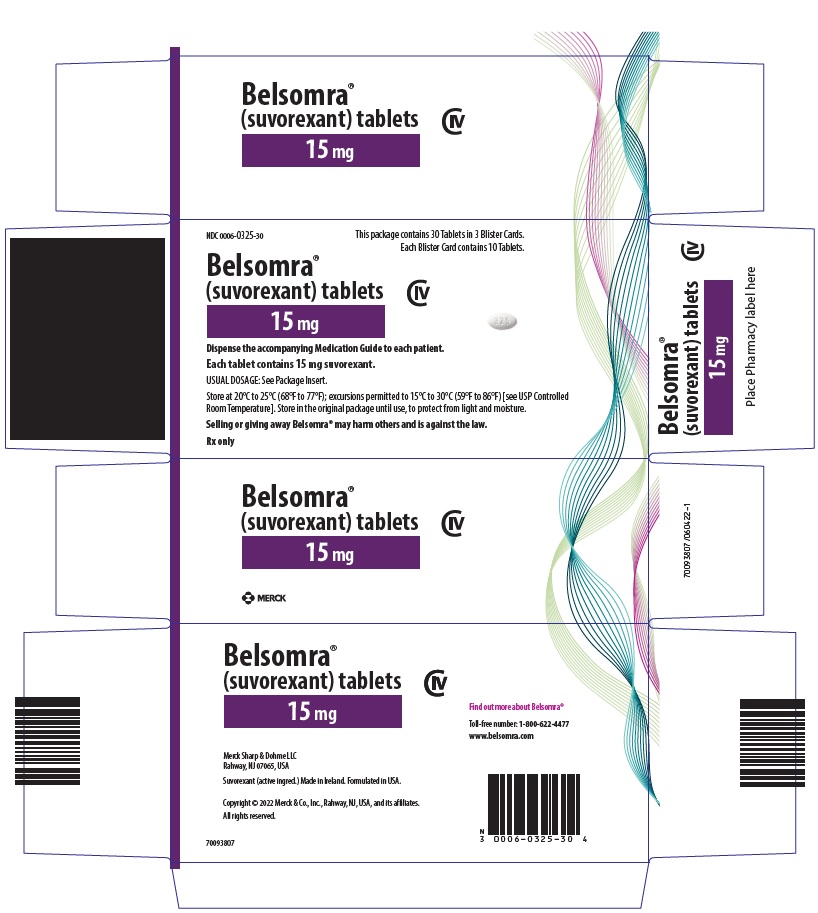 BELSOMRA tablets, 15 mg, are white, oval, film-coated tablets with the corporate logo on one side and "325" on the other side. They are supplied as follows: NDC 0006-0325-30 unit-of-use blisters of 30