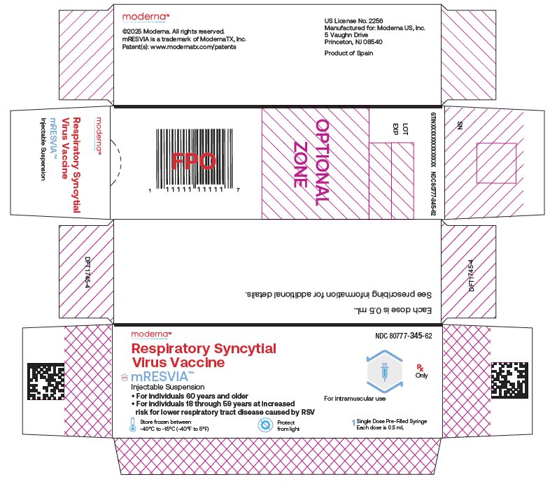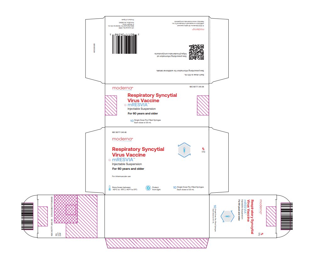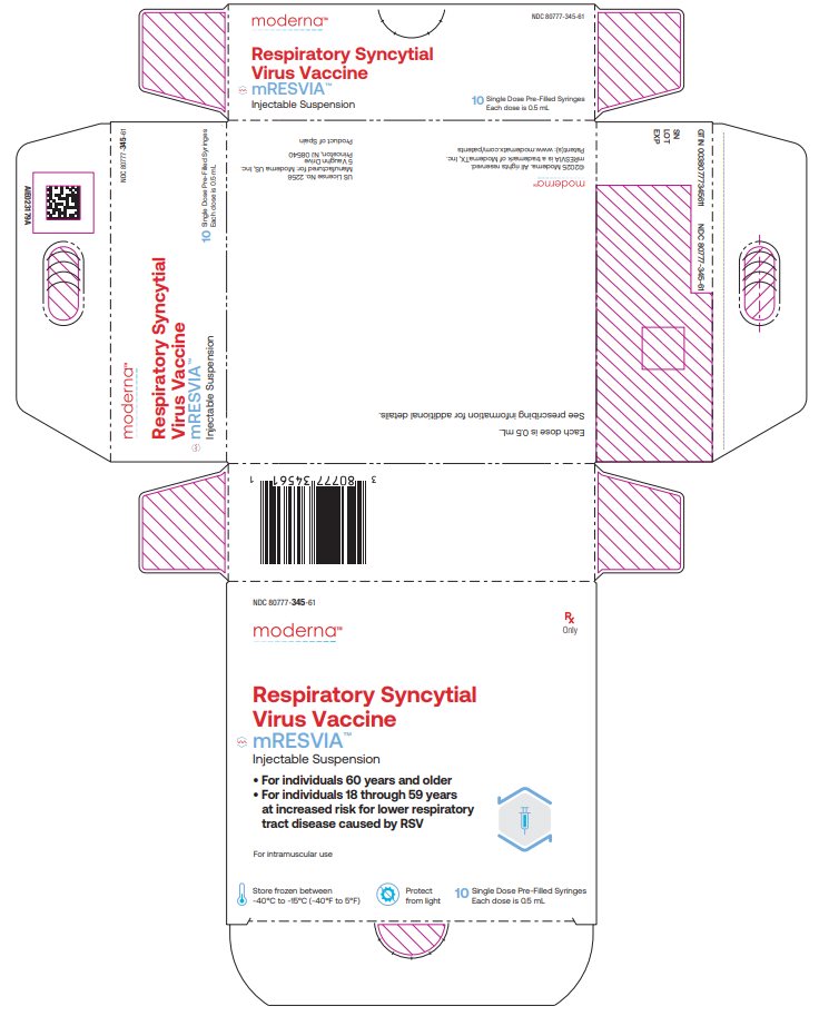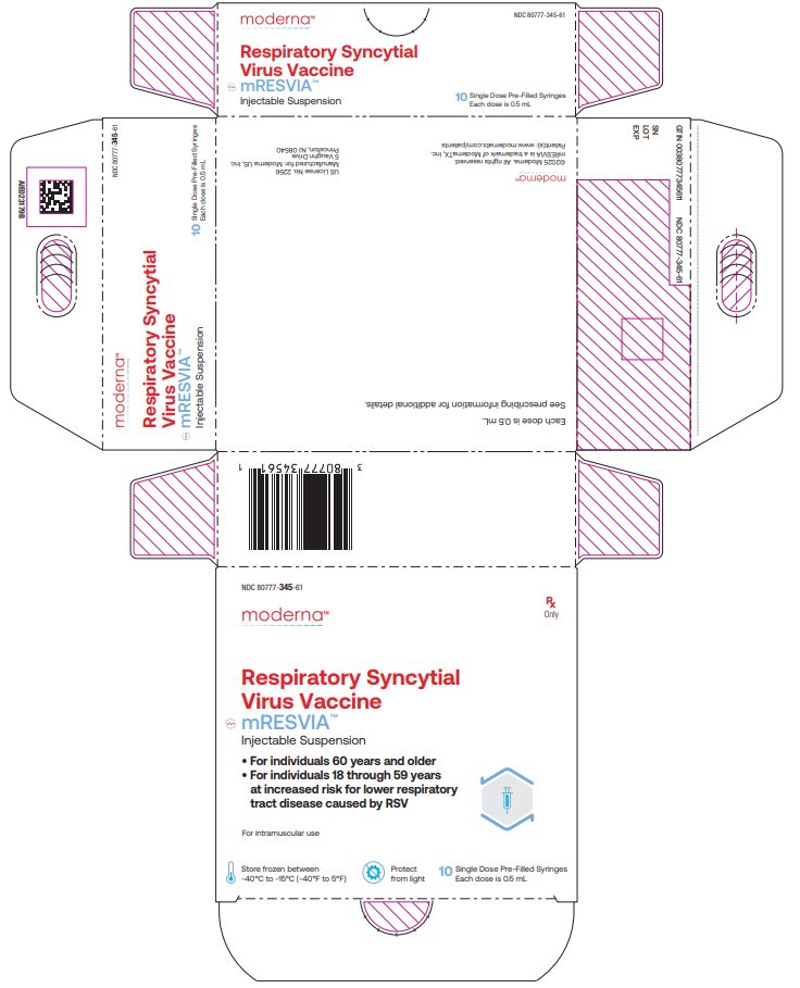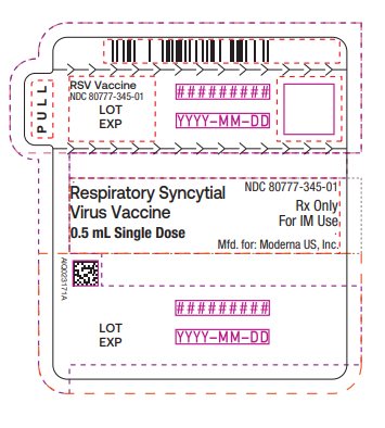 Respiratory Syncytial Virus Vaccine NDC 80777-345-01 0.5 mL Single Dose Rx Only For IM Use Mfd. for: Moderna US, Inc.