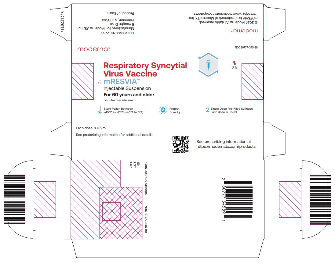 NDC 80777-345-89 Respiratory Syncytial Virus Vaccine mRESVIATM Injectable Suspension For 60 years and older For intramuscular use