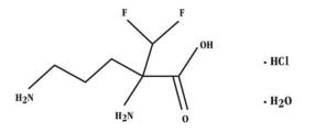 Chemically, eflornithine hydrochloride is (±) -2-(difluoromethyl) ornithine monohydrochloride monohydrate, with the empirical formula C6H12F2N2O2 HClH2O, a molecular weight of 236.65 and the following structural formula: