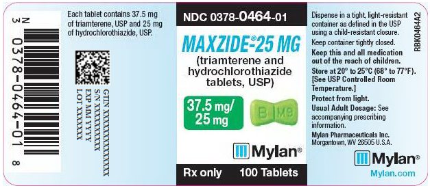 MAXZIDE®-25 MG tablets (triamterene and hydrochlorothiazide tablets, USP) are green, bow-tie shaped, single scored tablets with B to the left of the score and M9 to the right of the score on one side of the tablet and MAXZIDE on the other side. Each tablet contains 37.5 mg of triamterene, USP and 25 mg of hydrochlorothiazide, USP. They are supplied as follows: