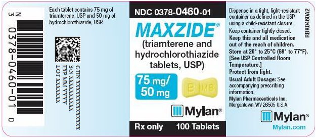 MAXZIDE® tablets (triamterene and hydrochlorothiazide tablets, USP) are yellow, bow-tie shaped, single scored tablets with B to the left of the score and M8 to the right of the score on one side of the tablet and MAXZIDE on the other side. Each tablet contains 75 mg of triamterene, USP and 50 mg of hydrochlorothiazide, USP. They are supplied as follows: