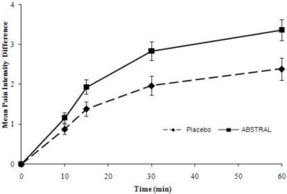Figure 2: Mean Pain Intensity Difference (±SE) for ABSTRAL Compared to Placebo